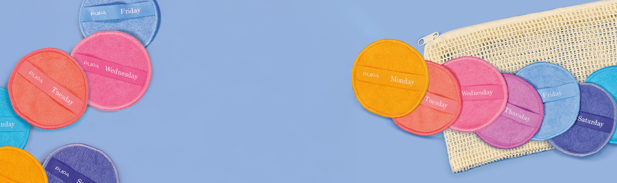 A Pad A Day je súprava 7 opakovane použiteľných bavlnených odličovacích tampónov Pupa Milano – jeden na každý deň v týždni – v praktickom sieťovanom vrecku na pranie.
